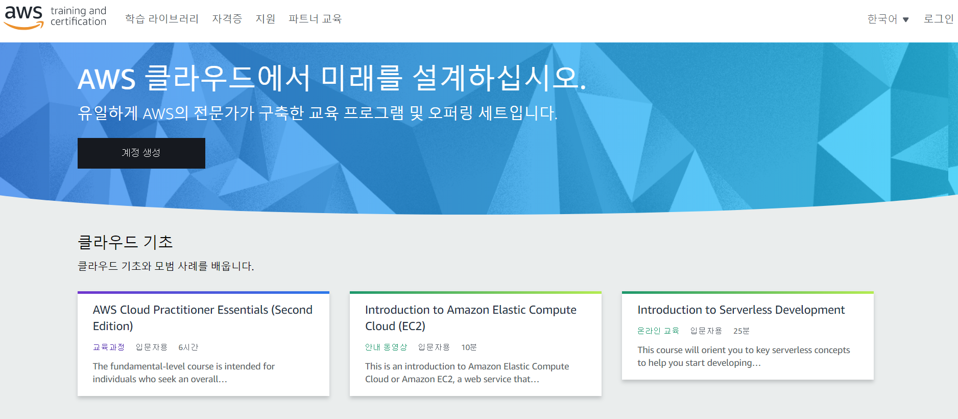 1. AWS Training 사이트 접속 https://www.aws.training