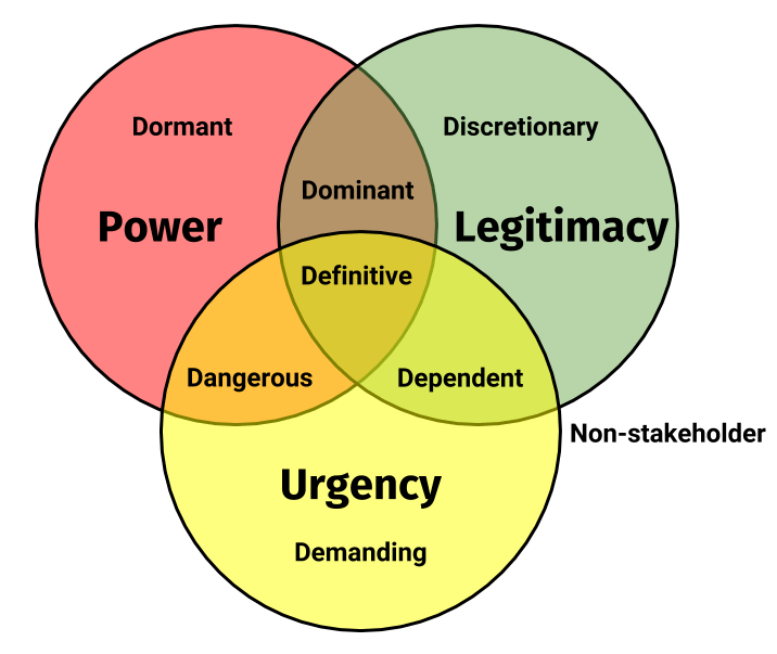 PM은 올바른 stakeholder를 찾고 의사소통 요구의 우선순위를 가리는 것을 필요로 하는데, Salience model은 3가지 dimension을 통해서 stakeholder의 중요도를 선별한다.