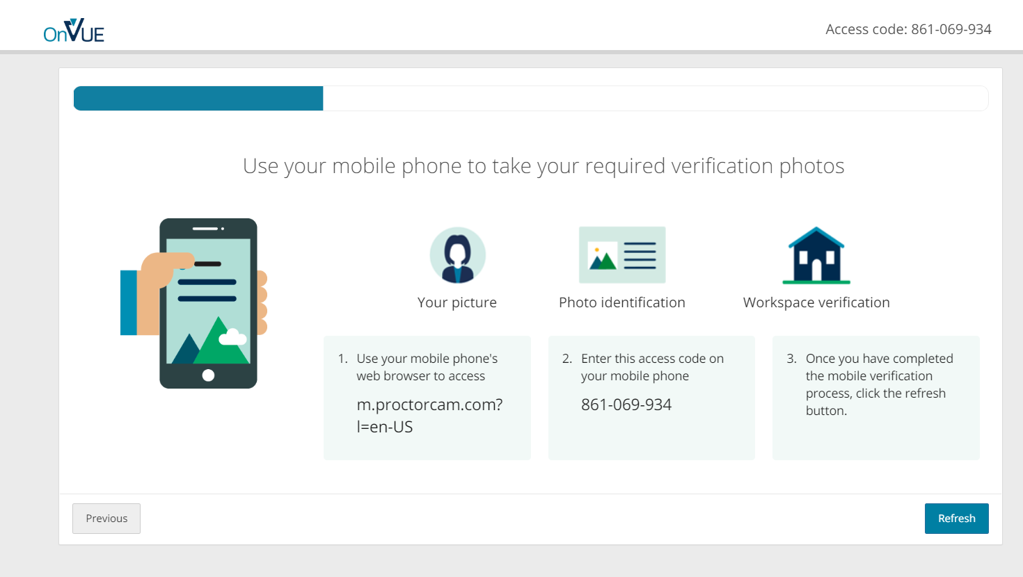 이 후부터는 1.에 주어진 링크로 모바일로 접속해서 본인 사진을 찍고, 신분증 사진(여권으로 진행함)을 찍고, 시험보는 환경의 앞, 뒤, 왼쪽, 오른쪽을 찍은 후 전송 후 refresh 버튼을 누릅니다.