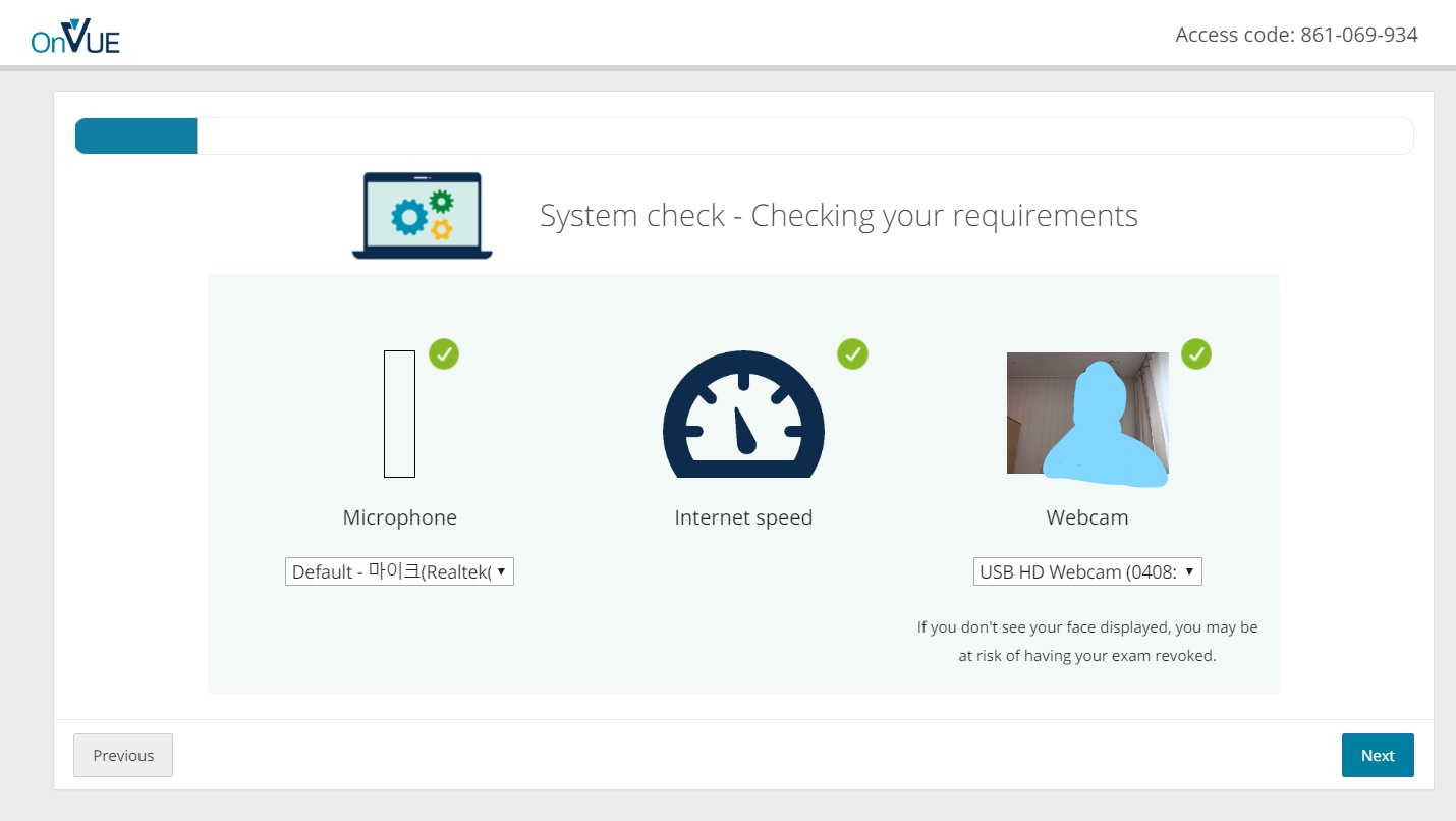 먼저 시험 진행을 위해 필요한 "onVue" 프로그램이 설치해야하는데요. 설치 후 뜨는 과정들입니다.