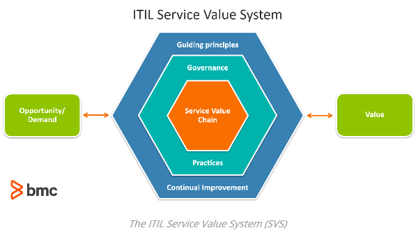 - ITIL Service Value Chain - ITIL practices - ITIL guiding principles - Governance - Continual improvement |