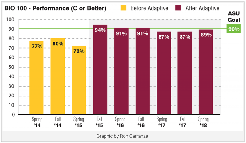 실제 Arizona State University 생명과학 학부에서 어댑티브러닝을 수업에 적용한 사례가 있습니다.