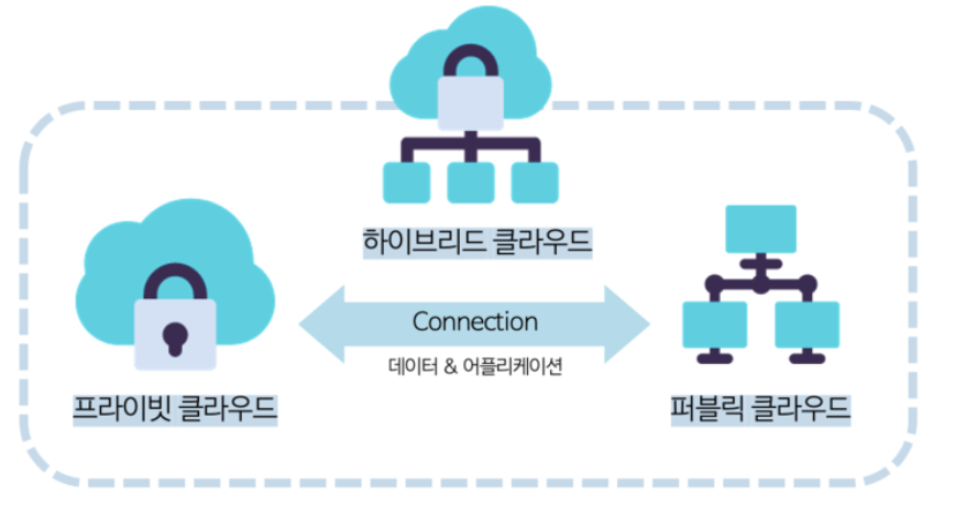 - 퍼블릭 클라우드와 프라이빗 클라우드가 합쳐진 형태인 "하이브리드 클라우드"