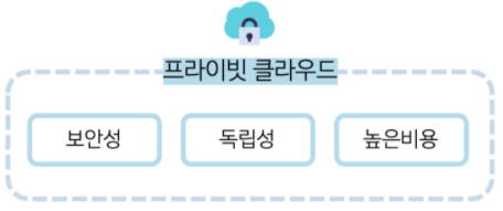 프라이빗 클라우드는 독립적인 엑세스 권한을 갖는 단일 고객만 독점적으로 기반 IT 인프라를 사용할 수 있는 클라우드 입니다. 조직의 인트라넷이나 사업자의 데이터센터 등 데이터가 더욱 강력히 보호되어야 하는 곳에 사용됩니다.