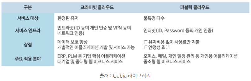 - 일반 사용자, 개인, 기업이 사용할 수 있도록 제공하는 "퍼블릭 클라우드"