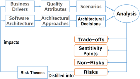- Architecture Trade-off Analysis Method - 아키텍처가 품질속성을 만족시키는지 판단, 품질 속성간 상호작용 확인 단계 - 아키텍처가 목표로 하는 품질만족도, 각 품질간의 연관성, 즉, 품질 목표간의 Trade-off가 있는지 파악 가능한 아키텍처 평가방법 |